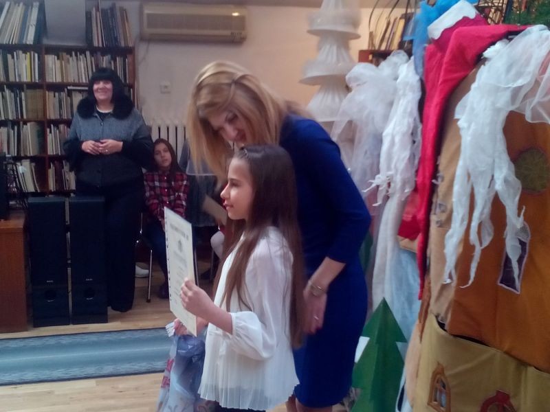 На тържеството днес директорът на РБ „Сава Доброплодни“ Росица Петрова връчи наградите от конкурса за Коледно послание.