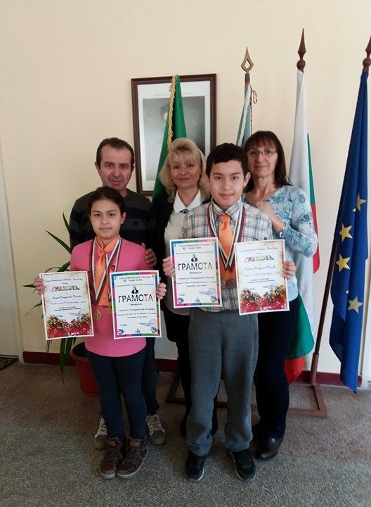 Две първи места за Мария Колева при петокласниците от област Сливен и 1-во и 3-то място за Никола Колев при седмокласниците от областта.
