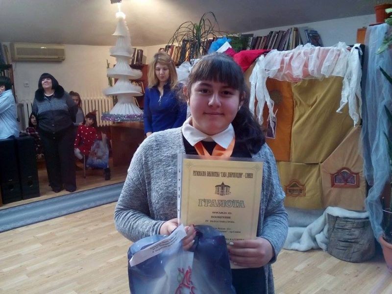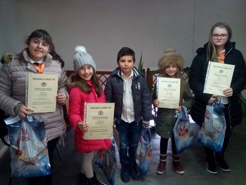 Наградите в раздел „Най-красива коледна картичка” бяха връчени от г-жа Пепа Чиликова – заместник кмет „Хуманитарни дейности” в община Сливен, а в категория „Оригинално коледно пожелание” - от директора на библиотеката, д-р Росица Петрова–Василева.