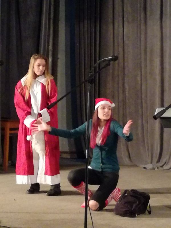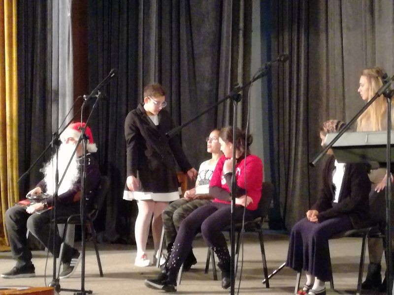 Замислено, подготвено и реализирано изцяло от учениците, Коледното шоу на Хуманитарна гимназия ни превърна в зрители (и участници) в забавно телевизионно предаване. Дори рекламите, излъчвани от импровизирания телевизионен екран, бяха изпълнени с хумор и предизвикаха бурен смях в публиката. С горещи аплодисменти посрещнахме изпълненията на ВИГ „Монолог“, балет „Грация“ и групата за народни танци в училището ни. Остроумните и забавни скечове ни показаха неподозирани комични заложби у много от участниците, които видяхме в съвсем различна от ученическата им роля.