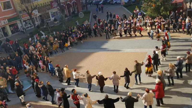Жители и гости на Сливен играха хоро на Коледа с Ансамбъла на площада пред Общината