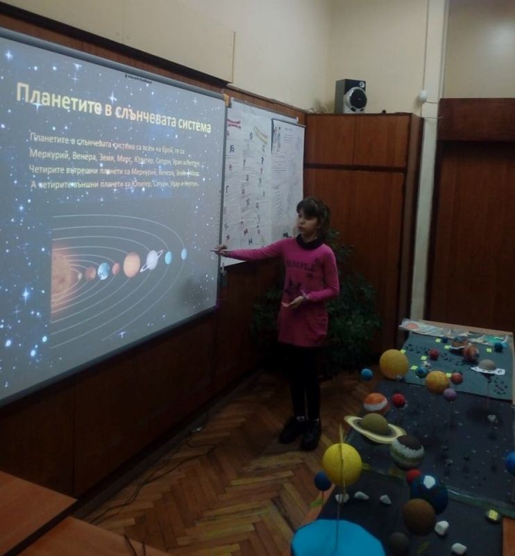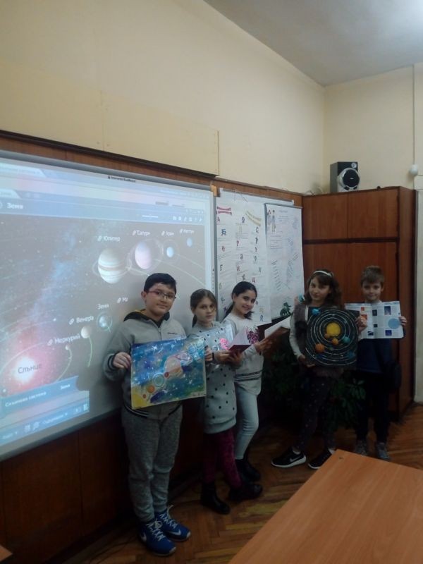 Четвъртокласниците при СУ "Йордан Йовков" - Сливен са активни участници в учебния процес. Днес го доказаха отново чрез своите групови и самостоятелни проекти за Слънчевата система. Изпълнението на такива дейности стимулира учениците да погледнат информацията от различен ъгъл, да я преосмислят или преподредят. Това допринася и за тяхното творческо и креативно мислене, повишава мотивацията им за учене, разширява познанията и засилва интереса им към Вселената.