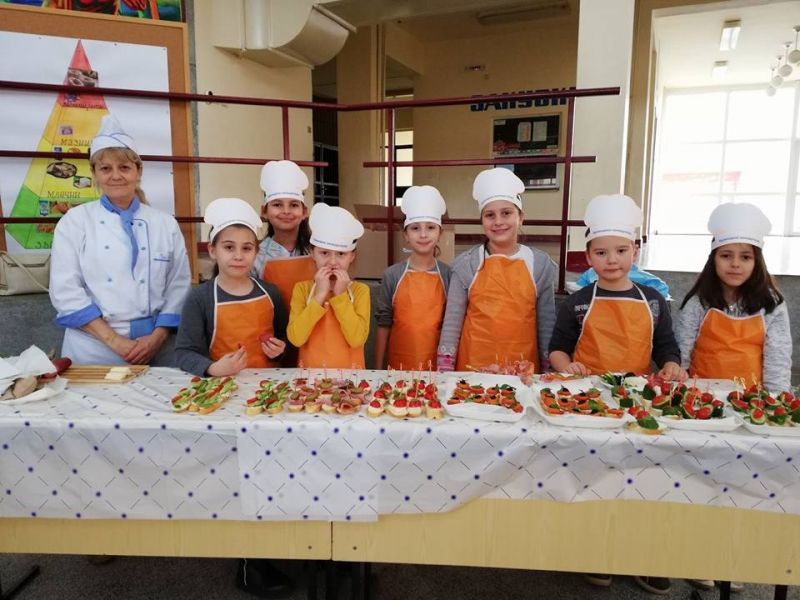 Истинска забава беше и за останалите учениците, които наблюдаваха кулинарната инициатива. Децата рецитираха тематични стихове, играха в игри и отговаряха на гатанки. Всичко това се случи под звуците на приятна детска музика.