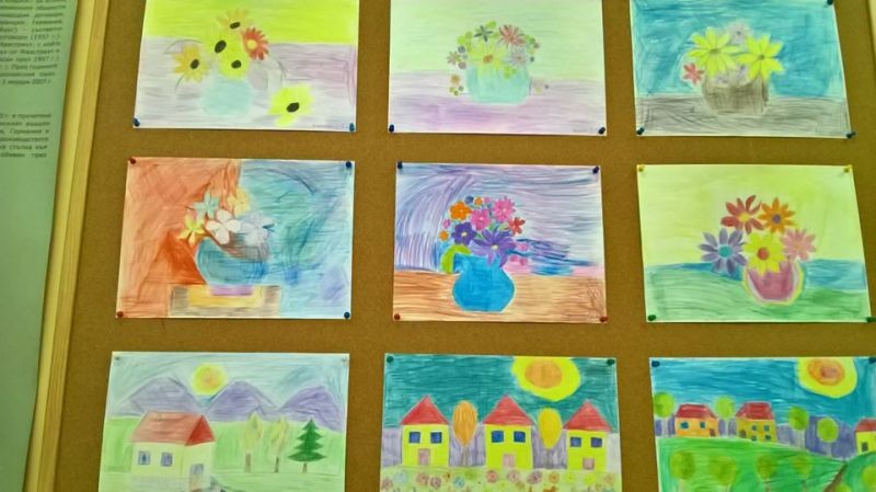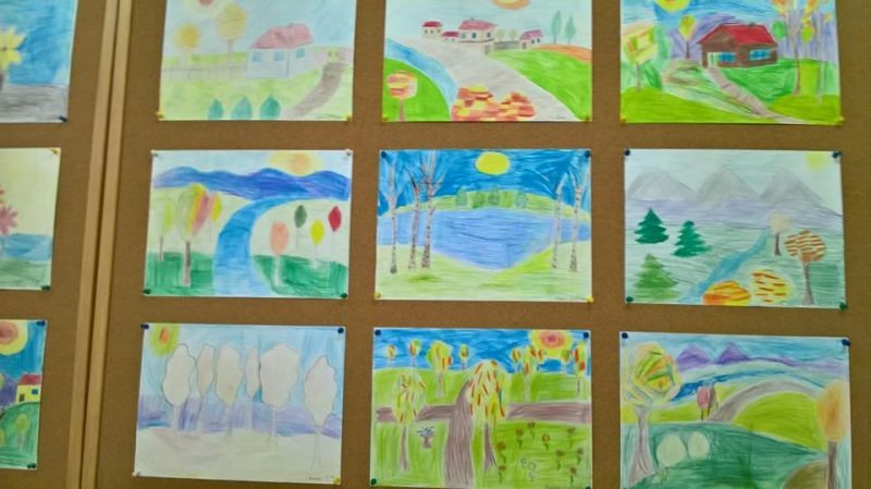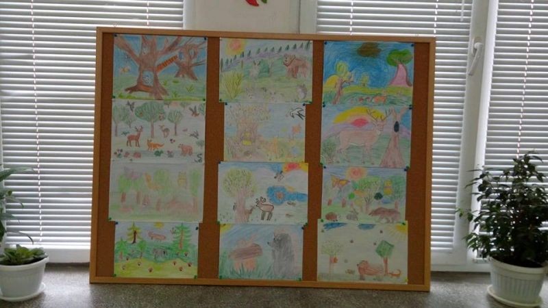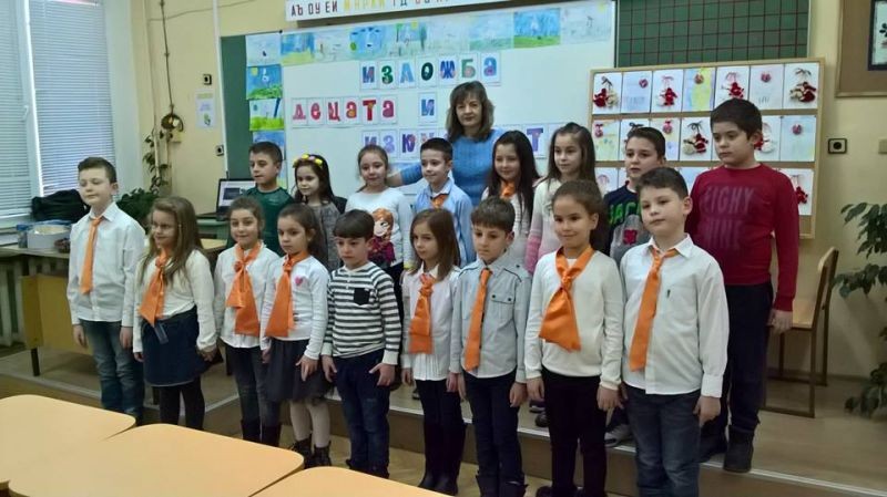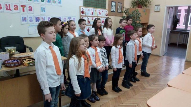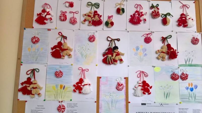 На 22.02. 2018г. първокласниците от групата по интереси „Децата и изкуството” с ръководител Е. Даскалова осъществиха своята представителна изява. Те организираха изложба на рисунки подчинени на темите : „Есен” , „Обитатели на природен парк „Сините камъни” и „Предвестници на пролетта”, апликации „С какво ще напълня кошничката си” и изработени от тях мартенички.
