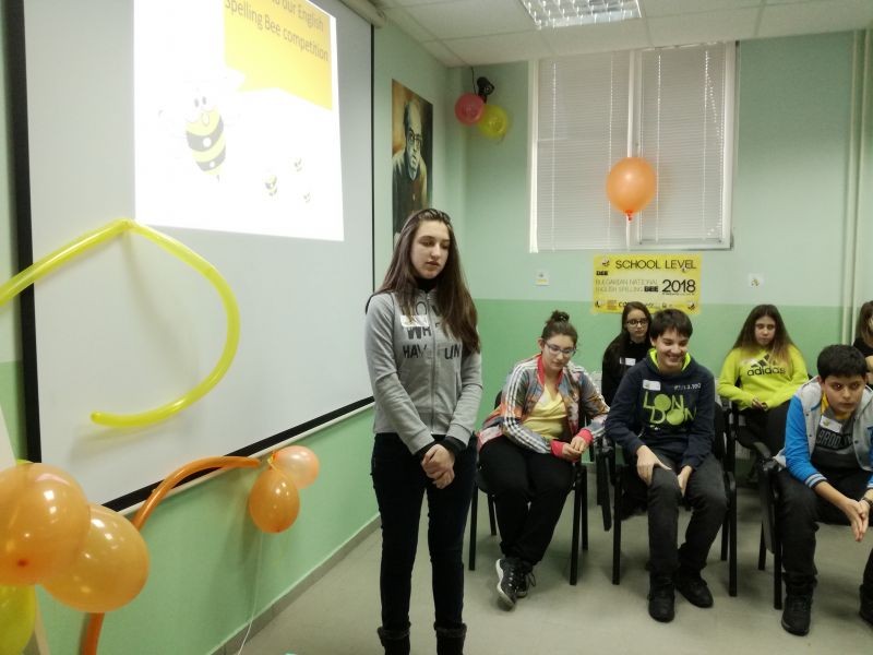 Състезаваха се ученици от 7 клас. Участниците демонстрираха отлично настроение и много добри знания. До финалния етап достигнаха две момичета, които ще участват в регионалния кръг на Осмото национално състезание по правопис на английски език Spelling Bee. Ани Малинова се класира на първо място в училищния кръг, а Йоанна Иванова - на второ място. И двете ще участват в регионалното състезание на 24 март 2018 г. в гр. Сливен. Пожелаваме успехи и награди на нашите възпитанички и в националния кръг на състезанието, който ще се проведе на 28 април 2018 г. в София.