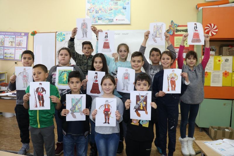 В инициативата се включиха ученици от начален етап, които оцветиха илюстрации от книгата "Хайдушки времена".