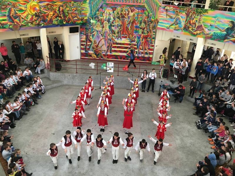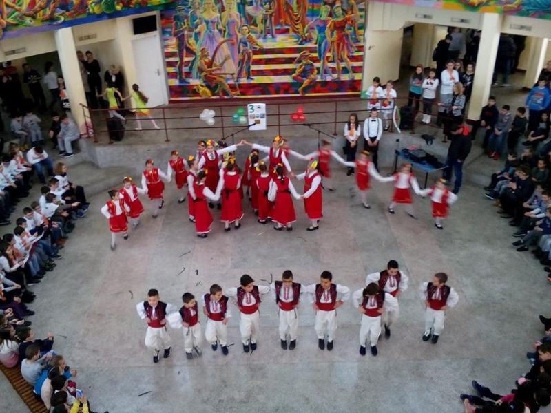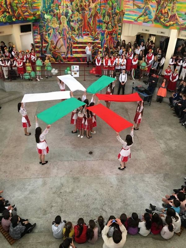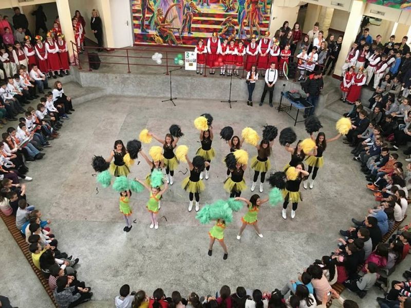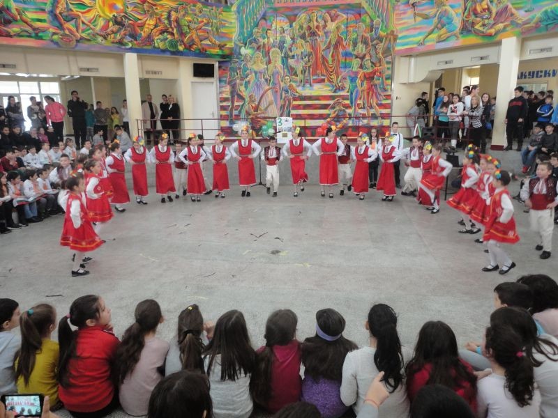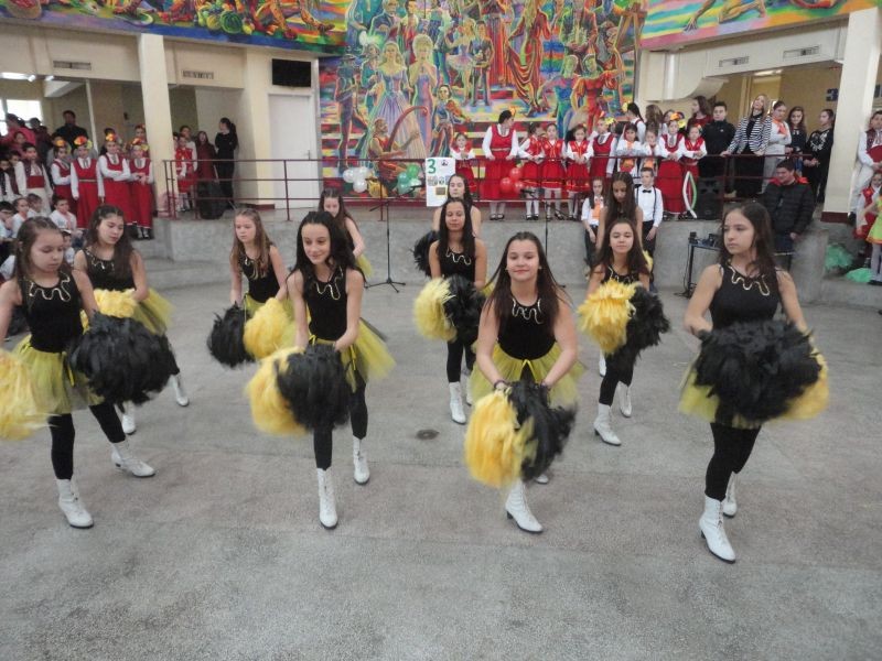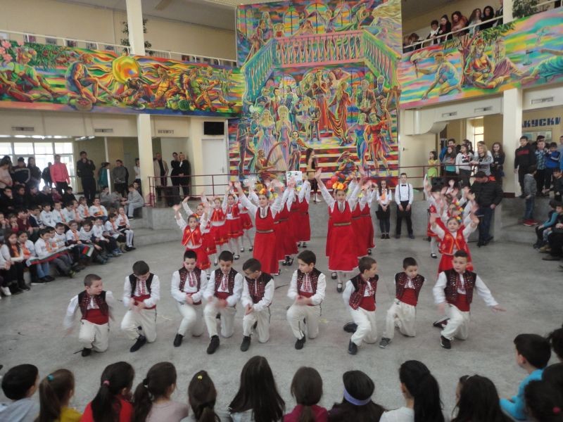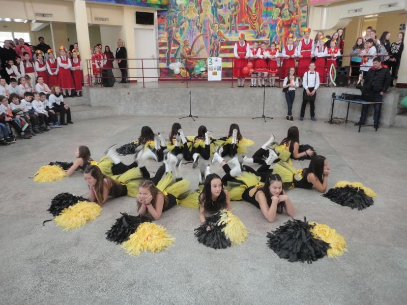 Във форума на училището бяха десетки ученици, учители и родители. Те изгледаха с голям интерес и танц със знамена. Впечатляваща беше и фолклорната програма, и тази на мажоретния състав.