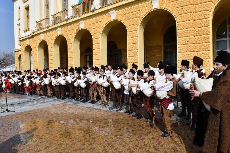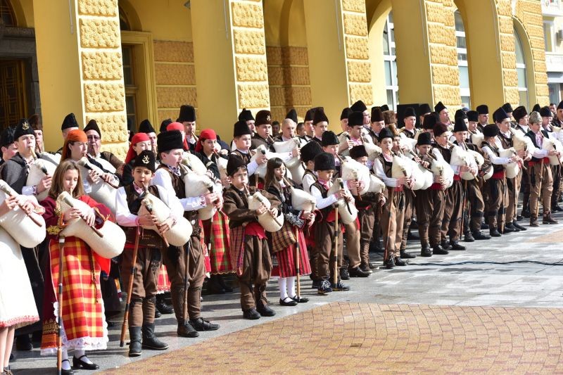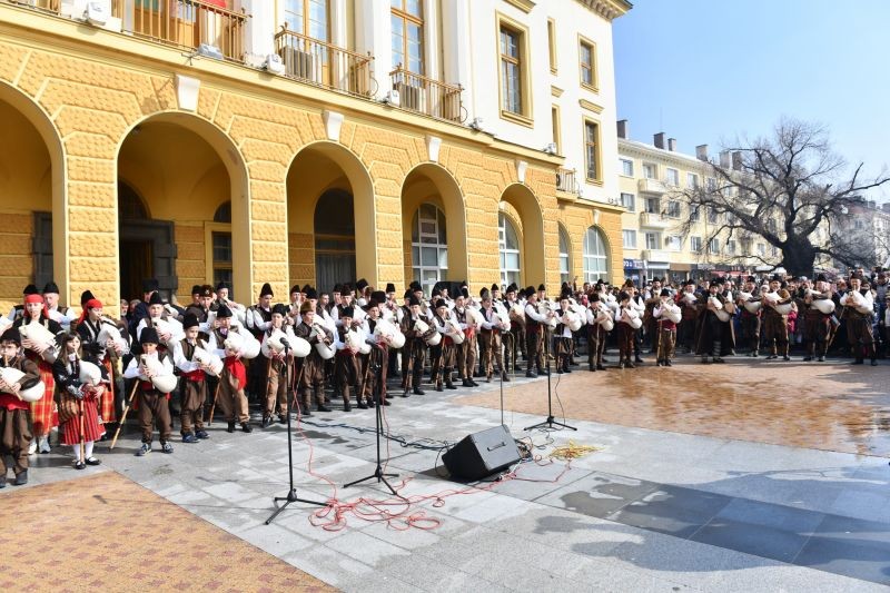 Със залп от около 20 пушки започнаха честванията за 3 март в Сливен. Войводите от клуб „Традиция“ поставиха началото на празника, след което пред сградата на Община Сливен засвириха 140 каба гайди, пристигнали от Смолян в Града под сините камъни. Гайдарите са на различна възраст – от 7 до70 години.
