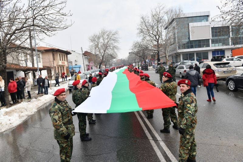 Градът на 100-те войводи – Сливен, отбеляза 3 март с шествие, предвождано от 140-метров трибагреник