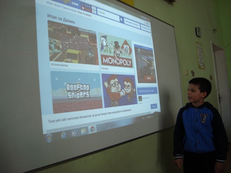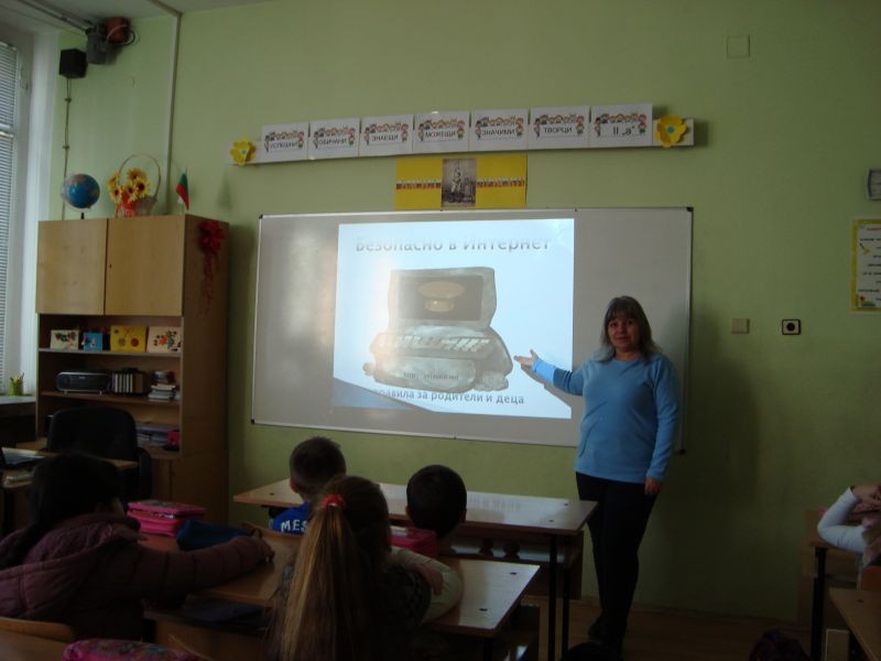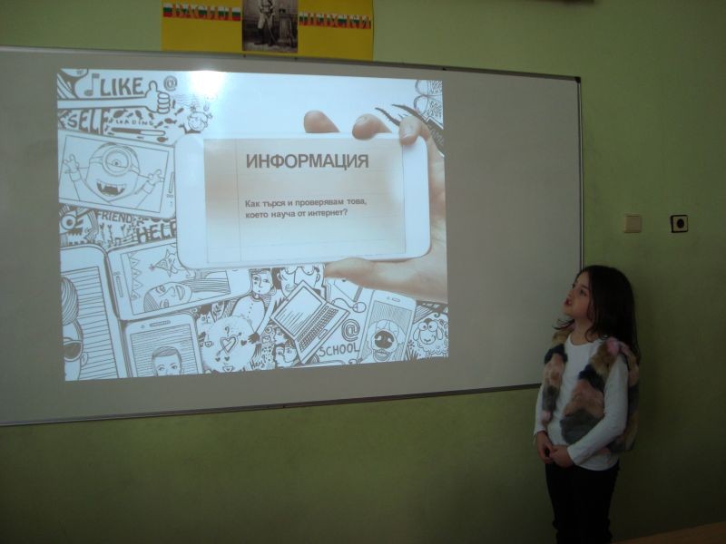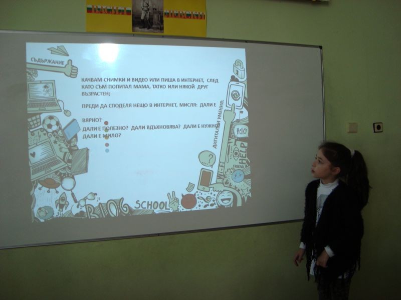 Във връзка с дните на медийна грамотност от 6 до 9 март, 2018 г. учениците от начален курс проведоха беседа на тема: „Безопасно в интернет – правила за родители и деца”.