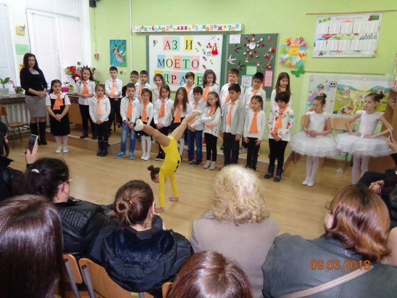 На 09.03.2018г. учениците от клуб „Аз и моето здраве” с ръководител г-жа Станислава Петкова проведоха своята първа публична изява. Децата от 2 „в” клас с голямо желание и емоция показаха какво са научили за здравословния начин на живот и ползата от него. Всеки ученик взе активно участие и разказа защо са полезни плодовете и зеленчуците и каква е правилната хигиена, която трябва да спазваме, за да сме здрави.Чрез много песни и различни танци децата показаха как умеят да се движат и насочиха вниманието към спорта и ползата от него. Интересни бяха игрите, които второкласниците изиграха със своите родители. Истинска еуфория предизвика тази, в която участниците - родители, със завързани очи, трябваше да познаят с какво биват хранени от учениците. Разбира се, всеки, включил се в игрите, бе възнаграден с вкусен и полезен плод.