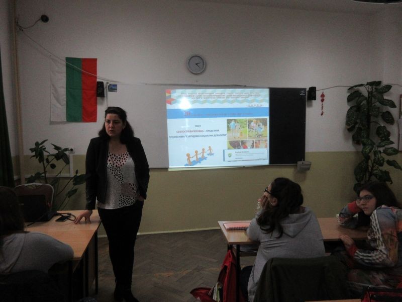 В седми клас гостува социалната работничка Светослава Бонева, възпитаничка на гимназията. Пред бъдещите осмокласници тя представи професията си и мотивите за своя избор.