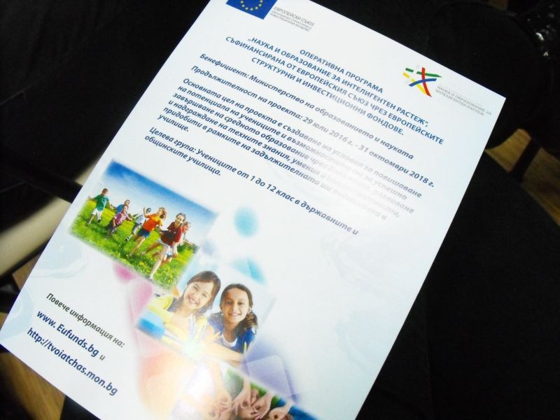 В понеделник, 26 март, РУО-Сливен бе домакин на регионална кръгла маса на по въпросите на проекта „Твоя час”. На събитието, открито от началника на РУО-Сливен д-р Бисерка Михалева, присъства заместник- областният управител Димитринка Петкова. В кръглата маса взеха участие представители на МОН и директорите на 71 училища в област Сливен. Представена бе работата на десетки клубове в училищата на област Сливен, създадени и работещи по проект „Твоя час”. Целта бе чрез презентации на участниците в кръглата маса да бъдат представени положителните практики от проекта “Твоят час”. Това съобощават Мими Дънекова, Йоана Иванова и Илияна Мавродиева- репортери от клуба по журналистика от паралелката с преподаване на руски език в ПГПЗЕ „З.Стоянов” Ето как отговори на въпроса на Илияна Мавродиева има ли интерес от учениците към предлаганите идеи на проекта „Твоят час „ директорът на ПГЕЕ „М.С.Кюри” Добри Маргенов: „Определено има интерес . Идеята ни е да помагаме на учениците си да завършат своето средно образование с идеята да достигнат степен за професионална квалификация и да ги убедим че е в техен интерес”. Според Добри Маргенов предпочитанията на учениците са различни . Някои от тях имат предпочитания към дейности извън учебният материал по предметите , по които се обучават . Изключителен интерес има към спортните изяви , към групи с излизания от населените места със своите съученици. Има деца с интерес към театралните изяви, които играят скечове на сцена или свирят на инструменти. Пред младите репортери ученици от ППМГ „Добри Чинтулов” споделиха, че в рамките на клуб по информатика по проекта „Твоя час” Изпълняват за определено време различни задачи с роботи. Редовно ходят на състезания. Последното състезание, в което са участвали е в София. Там ни подариха единия робот. Общо имаме два робота. След месец ще обикаляме цялата страна с нашите роботи. Ако ни одобрят, ще се класираме на по-висока възрастова група- обещаха още ученици от ППМГ пред репортерите от ПГПЗЕ.