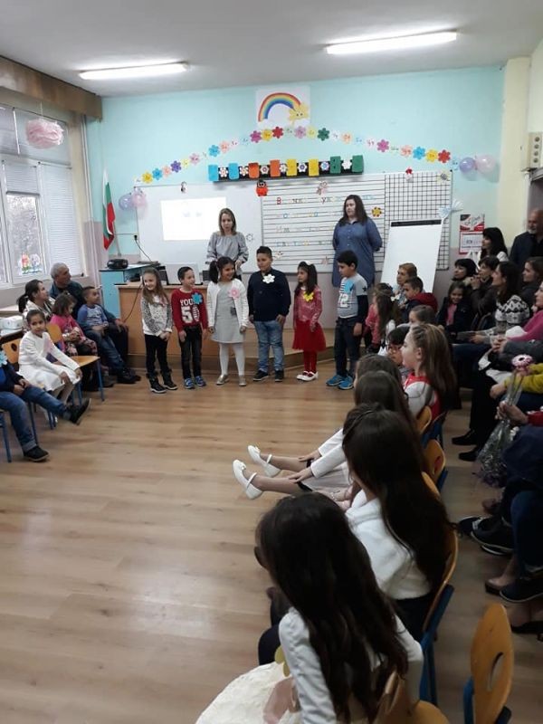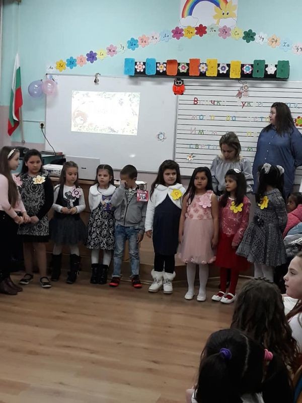 На 21.03.2018 малките ни първокласници заедно с първата си класна ръководителка, отпразнуваха първия си празник на буквите. Усмихнати и празнично облечени, с грейнали от вълнение очи, те с гордост заявиха:" Ние вече сме грамотни" и доказаха, че са направили първата най- трудна крачка в живота си. Като че ли беше вчера, когато те прекрачиха училищния праг а ето, че вече знаят всички букви, могат да четат и пишат. Пожелаваме им да са все така всеотдайни и прилежни ученици.