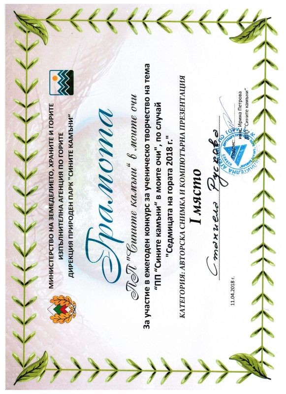 НАГРАДИ ЗА УЧЕНИЦИ ОТ ХУМАНИТАРНА ГИМНАЗИЯ В КОНКУРС ЗА СЕДМИЦАТА НА ГОРАТА