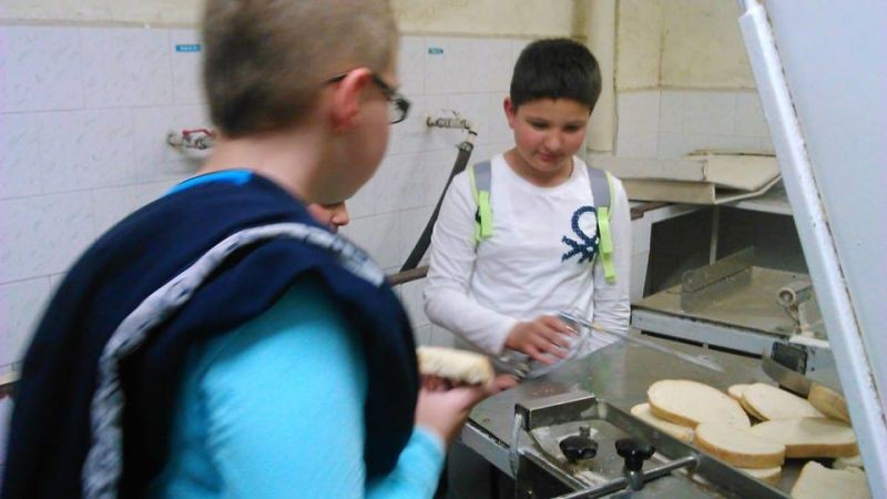 След нарязването на хляба, учениците с удоволствие похапнаха от него.