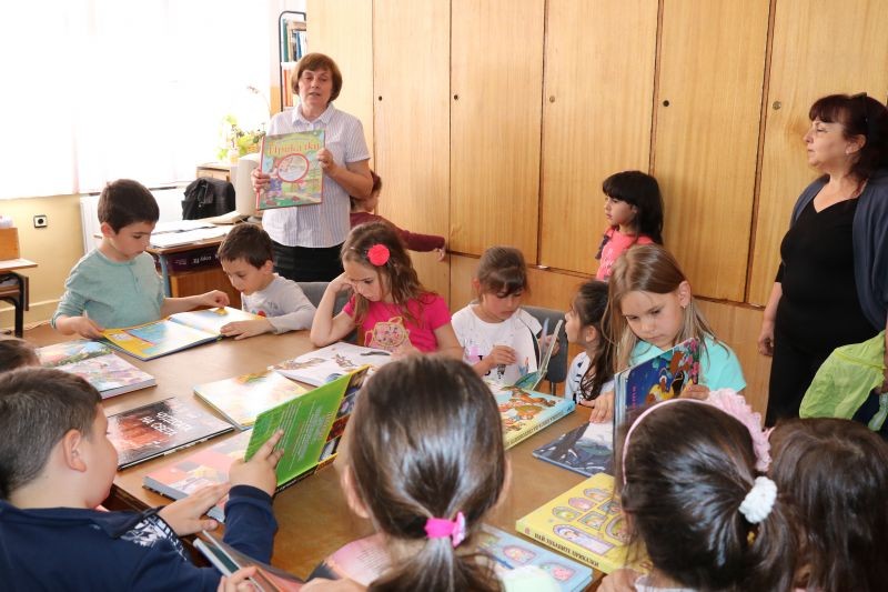 Децата от ДГ "Вержин и Хаик Папазян" посетиха училищната библиотека. Те имаха възможност не само да разгледат библиотеката и да се докоснат до книгите, но и да разберат какъв е пътят на книгата. Децата с интерес слушаха приказка за приятелството и пяха песни със съпровод на китара.