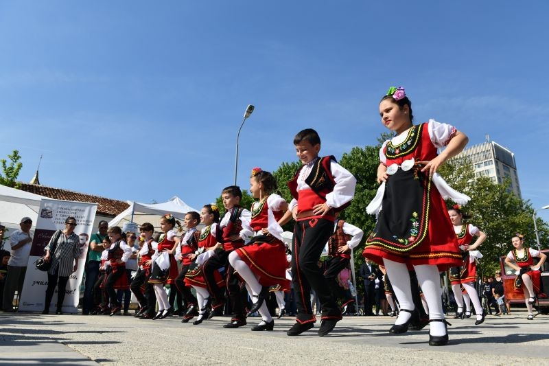 С фолклорна програма пред присъстващите се представиха малките певци и танцьори от ОУ „Христо Ботев“ в Сливен.