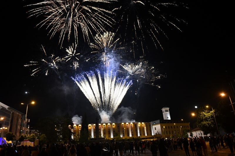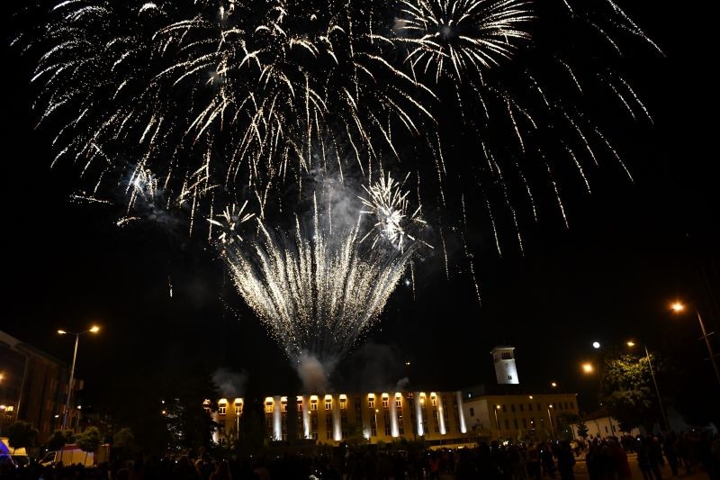 Празнични илюминации озариха небето под Сините камъни в края на вечерта.
