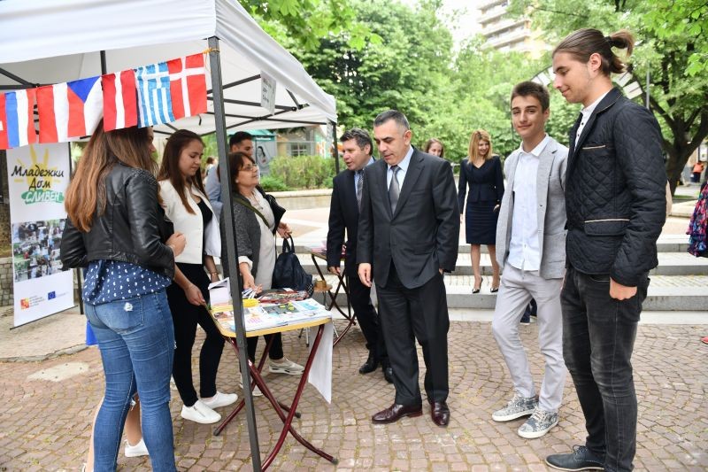 „9 май е ден, на който отбелязваме победата над хитлерофашизма и Деня на Европа. За тези повече от 70 години след Втората световна война Европа не само се разви, но и показа, че обединена може да постигне най-важната цел- да има мир. Това е направило Европа най-привлекателното място за живеене в целия свят“, заяви кметът и допълни, че ние като българи вече повече от 10 години също сме част от обединена Европа и трябва да пазим и развиваме това, което сме постигнали до момента. „Безспорни са ползите за всеки един от нас - да избираме къде да живеем, многото възможности дава Европа- възможности, които граждани на други краища на света не са имали. Всичко това дължим на обединена Европа и победата на разума в последната световна война и последвалите след нея събития“, каза още сливенският кмет. На откриването днес присъстваха и заместник - кметовете Пепа Чиликова и Стоян Марков, както и младежите, които днес влязоха в ролите на кмет и заместник - кметове в рамките на Деня на младежкото самоуправление.