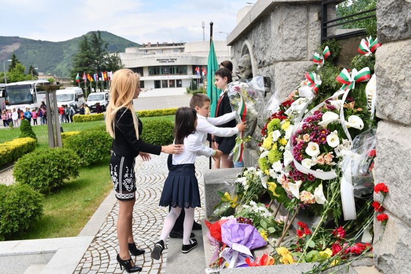Церемонията продължи с поднасяне на цветя от учениците пред паметника на Хаджи Димитър и сливенските възрожденци.