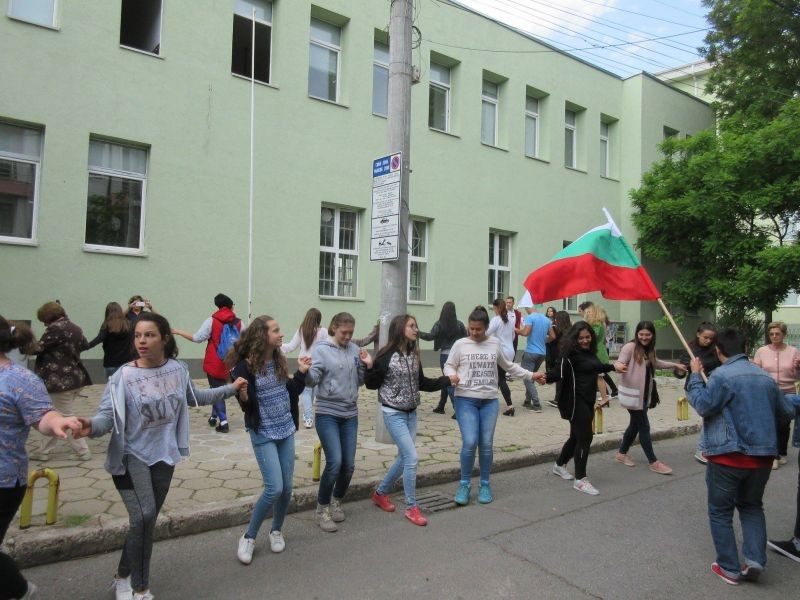 Днес училищната общност на Профилираната хуманитарна гимназия „Дамян Дамянов“ се присъедени към инициативата „Розите на България“ на Министерството на образованието и науката, на българските общности зад граница и на организациите, към които са разкрити български неделни училища в чужбина. Събитието, посветено на 11 май - Ден на светите братя Кирил и Методий, събра пред Втори корпус ученици, учители и служители на хуманитарната гимназия. Те се хванаха на българското право хоро по мелодията на „Празнична сюита“, изпълнена от оркестъра за народна музика на Българското национално радио, хор "Космически гласове" и хор на фолклорния ансамбъл „Тракия“. В хорото се включиха родители и приятели на гимназията.