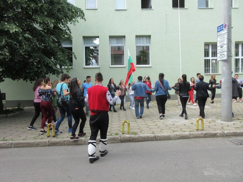 Днес училищната общност на Профилираната хуманитарна гимназия „Дамян Дамянов“ се присъедени към инициативата „Розите на България“ на Министерството на образованието и науката, на българските общности зад граница и на организациите, към които са разкрити български неделни училища в чужбина. Събитието, посветено на 11 май - Ден на светите братя Кирил и Методий, събра пред Втори корпус ученици, учители и служители на хуманитарната гимназия. Те се хванаха на българското право хоро по мелодията на „Празнична сюита“, изпълнена от оркестъра за народна музика на Българското национално радио, хор "Космически гласове" и хор на фолклорния ансамбъл „Тракия“. В хорото се включиха родители и приятели на гимназията.