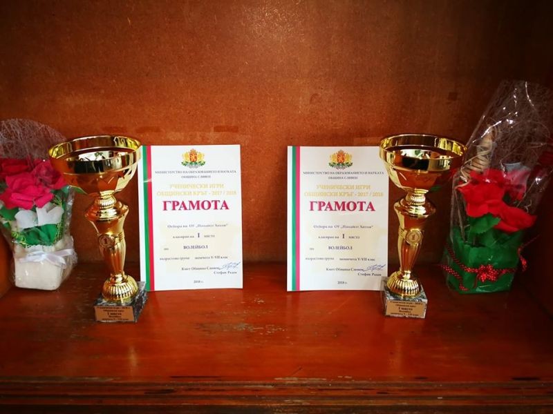 На 14 май, понеделник, с купи и грамоти бяха наградени победителите от Общински кръг на "Ученически игри 2017-2018 година". Отборите на момичетата и момчетата по волейбол на ОУ "Панайот Хитов", безапелационно завоюваха призовите места в категориите 5-7 клас и се класираха за Републиканското първенство. Церемонията по награждаването се състоя в спортна зала "Васил Левски", а отличията връчи заместник-кметът по хуманитарните дейности Пепа Чиликова. Пожелаваме им успехи по пътя към победата!