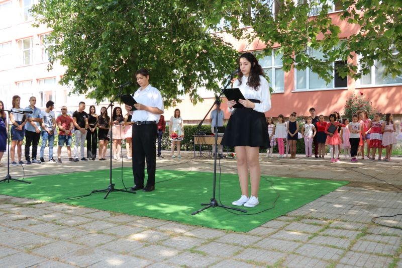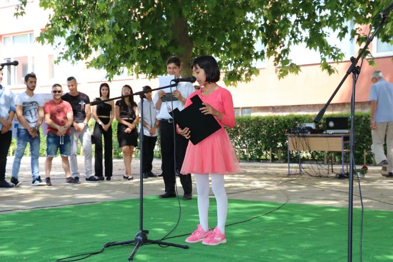 И днес пъстрото празнично тържество, с грейнали усмивки, весела глъчка и много цветя, е посветено на абитуриентите – момичетата и момчетата от випуск 2018. С радостни усмивки пред учители, родители и ученици застанаха дванадесетокласниците.