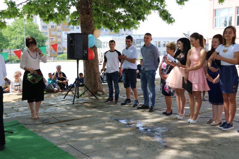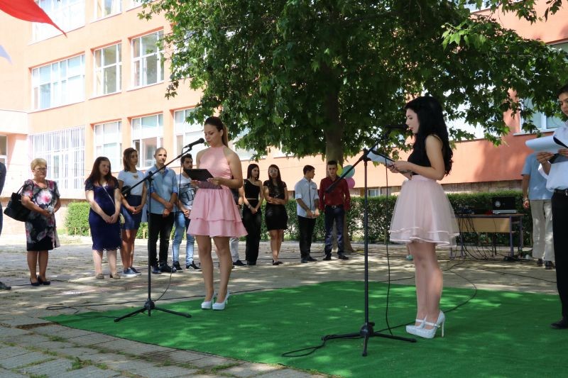 По време на празничния ритуал зрелостниците бяха поздравени от г-жа Кънева, директор на училището, а също и от ученици от училището. Видяха се сълзи в очите на класния ръководител, на учителите и учениците, на присъстващите родители и гости на тържеството, което завърши с кръшно българско хоро.