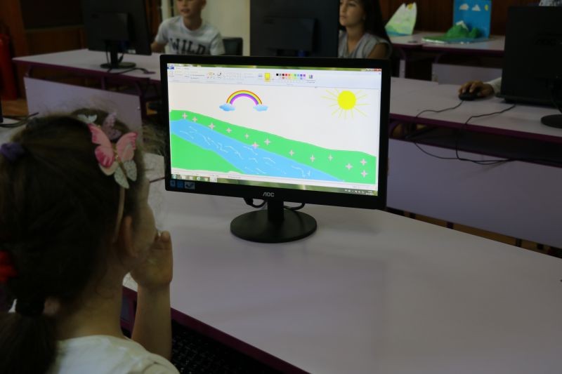 В края на учебната година учениците показаха завидни умения и знания при работа с програма Paint и използването на интерактивна дъска в час по информационни технологии, проведен от Соня Димитрова - начален учител.