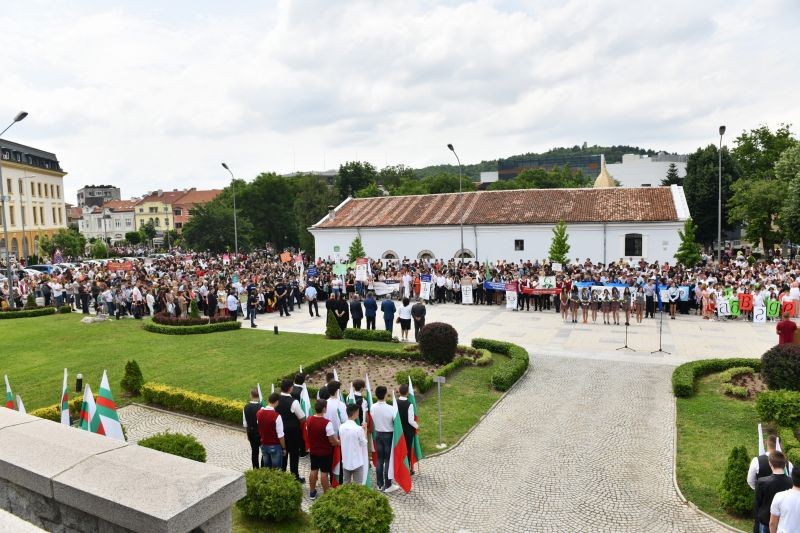 В шествието се включиха учители и ученици от сливенските училища, преподаватели и студенти от филиалите на двете висши учебни заведения в Сливен- Технически университет - София и Медицински университет- Варна, културните институти от града.
