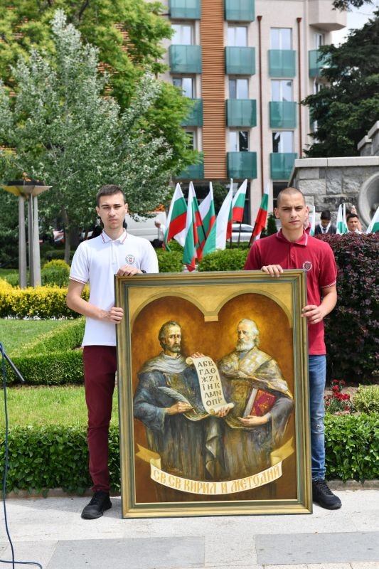 Многолюдно шествие за 24 май - празник на българската просвета и култура и на славянската писменост премина по Главната улица на Сливен. Шествието тръгна от Градската градина с голям портрет на Светите братя Кирил и Методий и гирлянд, носени от ученици от сливенски училища. Най - отпред на шествието бяха мажоретни състави, Военният духов оркестър - Сливен и ученици с български трибагреници и буквите от българската азбука в ръце. Те бяха следвани от кмета на Община Сливен Стефан Радев, народните представители Десислава Танева и Кольо Милев, областния управител Чавдар Божурски, председателя на Общински съвет - Сливен Димитър Митев, началника на РУО - Сливен д-р Бисерка Михалева, заместник - кметовете Пепа Чиликова, Румен Иванов, Стоян Марков, секретаря на Общината Валя Радева, общински съветници.
