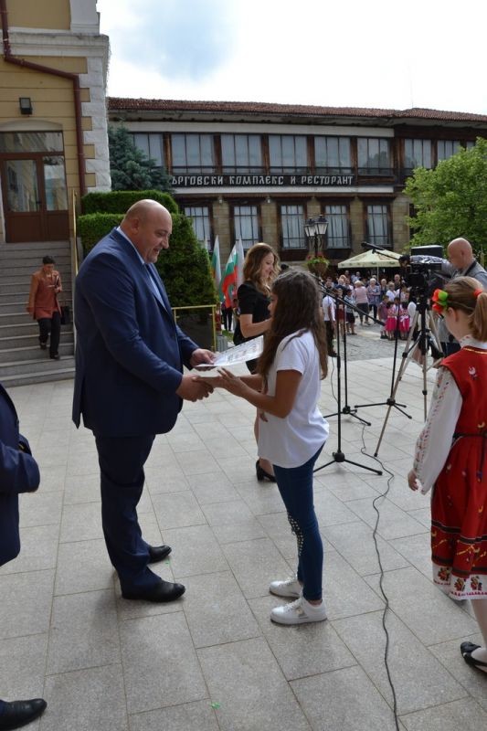 На площад „Възраждане” в Котел се състоя тържествен ритуал за предаване на училищните знамена от абитуриентите на по-малките ученици. Кметът на общината Коста Каранашев връчи грамоти и награди на учениците, които завършват с отличие учебната 2017/2018 година.