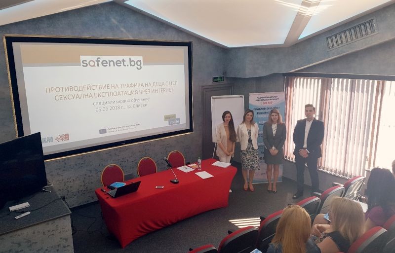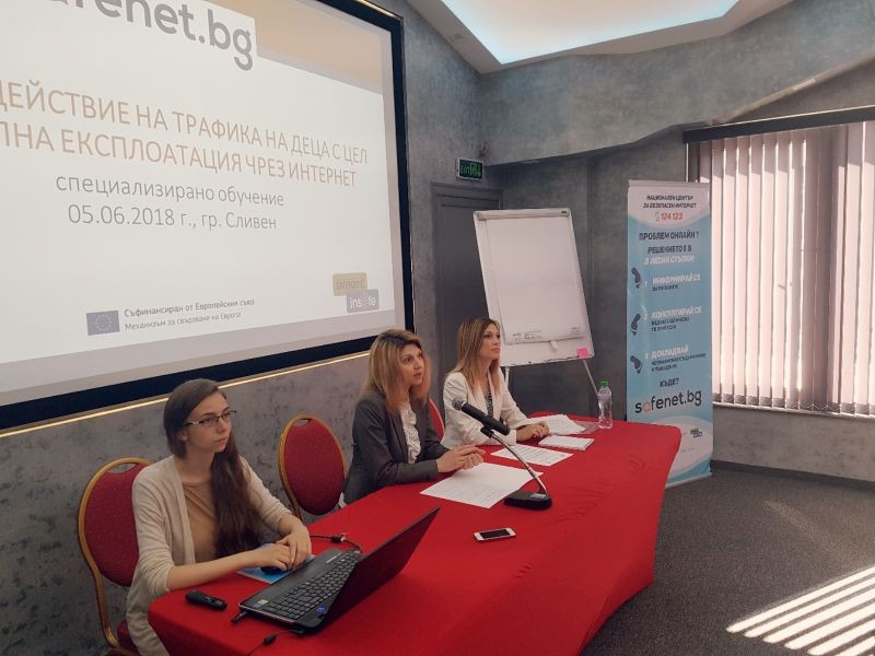 В Сливен се проведе специализирано обучение за професионалисти, на тема „Противодействие на трафика на деца с цел сексуална експлоатация чрез Интернет”, с лектори Ралица Михайлова: психолог – експерт към Националния център за безопасен интернет и Антоанета Василева: експерт противодействие на трафика на хора. Организатори на обучението са Местната комисия за борба с трафика на хора, гр. Сливен и Националната комисия за борба с трафика на хора.