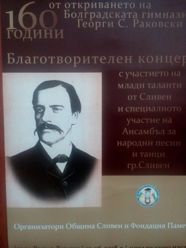 Тази вечер е благотворителният концерт за Болградската гимназия „Г.С.Раковски“. Концертът ще започне в 19 часа в спортна зала „Васил Левски“ и ще бъде със специалното участие на Ансамбъла за народни песни и танци- Сливен. Зрителите ще видят и изпълнения на детски и младежки фолклорни и балетни формации, на индивидуални изпълнители и на вокално- инструментални групи, демонстрации на детски групи от спортни клубове. Билетите са на цена 5 и 10 лева и могат да се закупят във фоайето на залата преди концерта. Средства ще се събират и в кутии, също поставени във фоайето на зала „Васил Левски“.