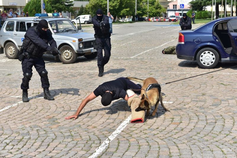 Церемонията на площада приключи с демонстрация на Тактическото звено за бързи действия при ОДМВР- Сливен, при която бяха задържани „опасни престъпници“.