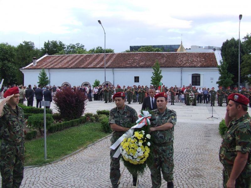 Венци и цветя бяха поднесени от областния управител Чавдар Божурски, кмета на община Сливен Стефан Радев, директора на ТД на ДАНС Николай Чиликов, председателя на общинския съвет Димитър Митев, началника на РУ на МВР гл.инспектор Димитър Кикьов, зам.началника на Центъра за подготовка на специалисти полк.Данчо Николов, подп.Евгени Ташков от РС „Военна полиция“, общински съветници, директора на РИМ Николай Сираков, патриотични организации, мотоклуб „Хайдути“, граждани.