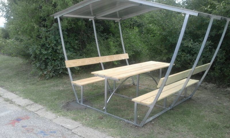 Съоръжението е с покривна част и е оборудвано със две пейки и маса.