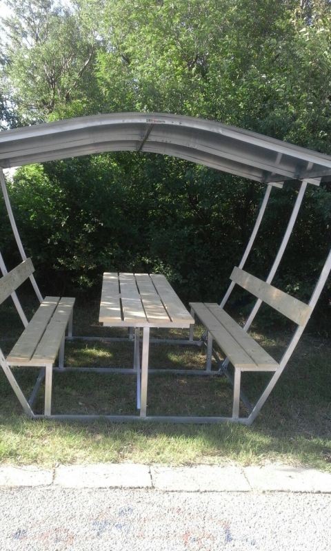 Съоръжението е с покривна част и е оборудвано със две пейки и маса.