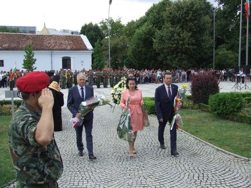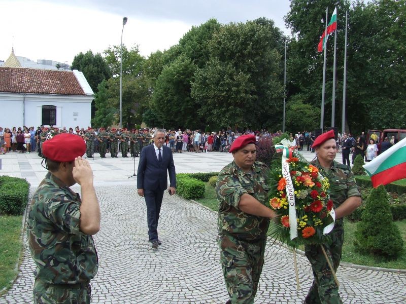 С военни почести, тържествено издигане на националния флаг и поднасяне на цветя пред паметника на Хаджи Димитър премина официалната церемония на централния площад в Сливен послучай Съединението. Молитва за здраве и добруване отправи Негово Високопреосвещенство сливенският митрополит Иоаникий. В приветствието си към гражданите кметът на община Сливен Стефан Радев подчерта, че Съединението на Княжество България с Източна Румелия е изцяло българско дело, организирано от български водачи, подкрепено от българския народ, защитено от българската дипломация. Гост на празничния ритуал бе областният управител на Сливен Чавдар Божурски. В знак на почит и уважение към деятелите на съединисткото движение той поднесе венец пред паметника на Хаджията. Венци и цветя бяха положени още от народните представители Десислава Танева, Кольо Милев, Таско Ерменков, ръководители и представители на държавни и общински структури и ведомства, общински съветници, политически партии, обществени и патриотични организации, културни институции, много ученици и граждани. Концерт изнесе фолклорният състав към читалище „Хаджи Димитър” в Сливен. Организатори на церемонията бяха община Сливен, военно формирование 22 220, читалище „Х.Димитър”.