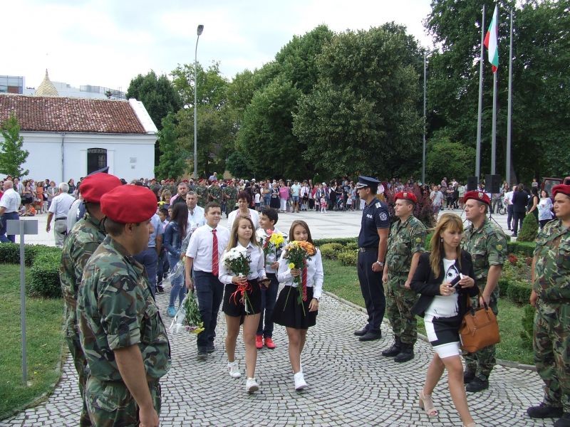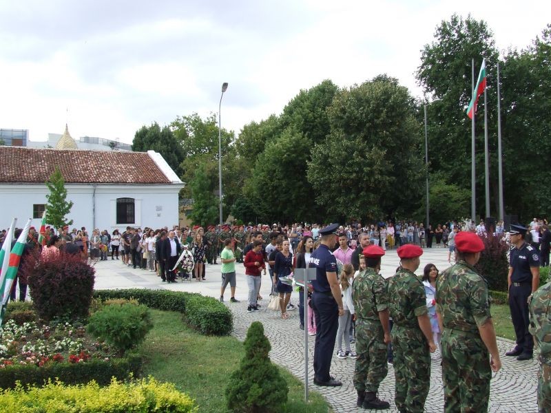 С военни почести, тържествено издигане на националния флаг и поднасяне на цветя пред паметника на Хаджи Димитър премина официалната церемония на централния площад в Сливен послучай Съединението. Молитва за здраве и добруване отправи Негово Високопреосвещенство сливенският митрополит Иоаникий. В приветствието си към гражданите кметът на община Сливен Стефан Радев подчерта, че Съединението на Княжество България с Източна Румелия е изцяло българско дело, организирано от български водачи, подкрепено от българския народ, защитено от българската дипломация. Гост на празничния ритуал бе областният управител на Сливен Чавдар Божурски. В знак на почит и уважение към деятелите на съединисткото движение той поднесе венец пред паметника на Хаджията. Венци и цветя бяха положени още от народните представители Десислава Танева, Кольо Милев, Таско Ерменков, ръководители и представители на държавни и общински структури и ведомства, общински съветници, политически партии, обществени и патриотични организации, културни институции, много ученици и граждани. Концерт изнесе фолклорният състав към читалище „Хаджи Димитър” в Сливен. Организатори на церемонията бяха община Сливен, военно формирование 22 220, читалище „Х.Димитър”.