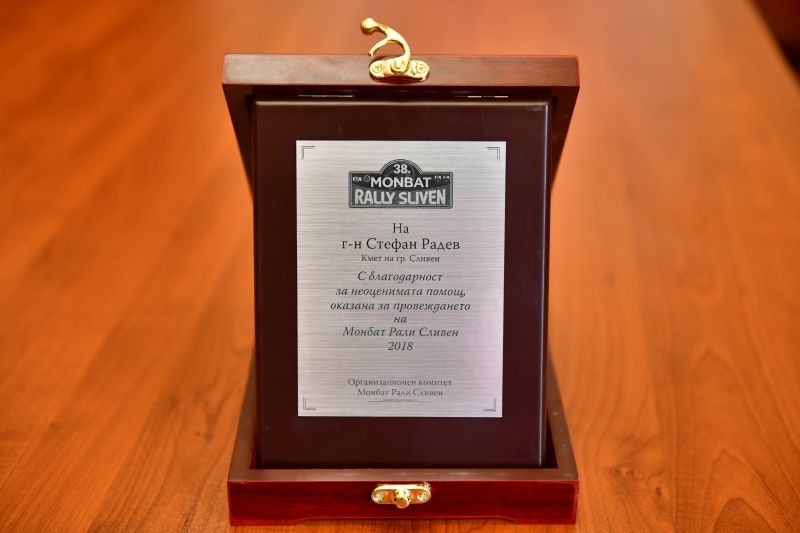 Организационният комитет на рали „Сливен“ връчи почетен плакет на кмета Стефан Радев