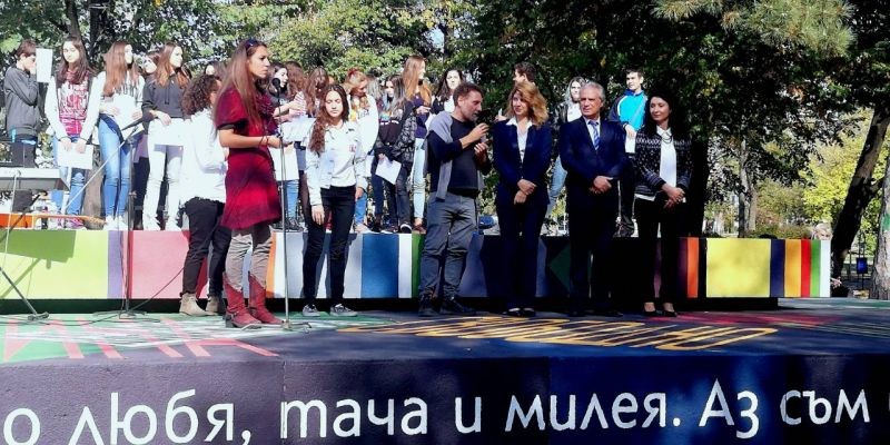 Многоцветна плоча, изписана с части от патриотични стихове днес официално посрещна посетителите на Градския парк в Сливен. Тя е дело на младите художници от Национална художествена гимназия ,,Димитър Добрович”.