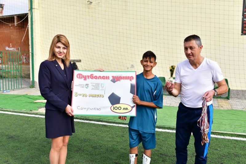 Финалът на Петия есенен футболен турнир за училищата в населените места на община Сливен се проведе вчера. На площадката до зала ,,Асеновец” сили премериха училищните отбори от селата Самуилово, Гавраилово, Тополчане и кв. „Речица“. Малко по-късно се състоя и официалното награждаване. Купите и наградите на финалистите връчи заместник – кметът Пепа Чиликова. Тя поздрави всички участници в турнира за усилията и подготовката, която са положили.