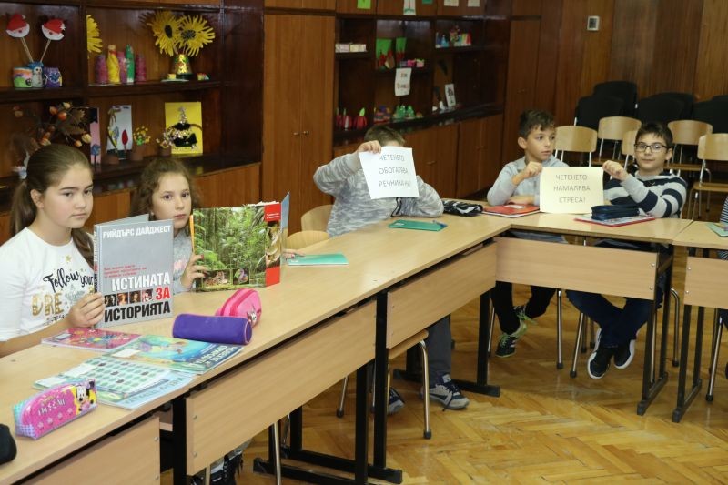 Поставихме началото с четене на откъси от енциклопедии, съчинение на тема "Обичам да чета, защото ... " и интерактивна игра "Четене с разбиране".