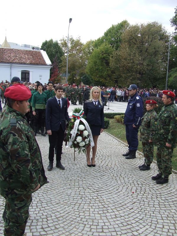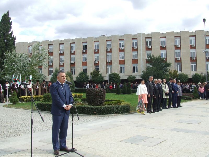 Областният управител бе гост на тържествената церемонияНовият регионален клуб "Х.Димитър" направи възстановка на разпускането на хайдушката дружина Официалните гости на церемониятаТържествено издигане на знамето на Сливен, националния флаг и флага на ЕСКметът Стефан Радев приветства сливенциПред паметника на Хаджи Димитър бяха поднесени венци и цветяПред паметника на Хаджи Димитър бяха поднесени венци и цветяНа 26 октомври катедралният храм "Свети Димитър" отбелязва храмовия си празник