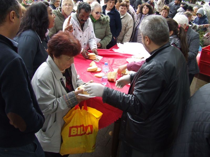 26 октомври е празник и на катедралния храм „Свети Димитър“. След церемонията свещеници раздадоха храна на миряните.