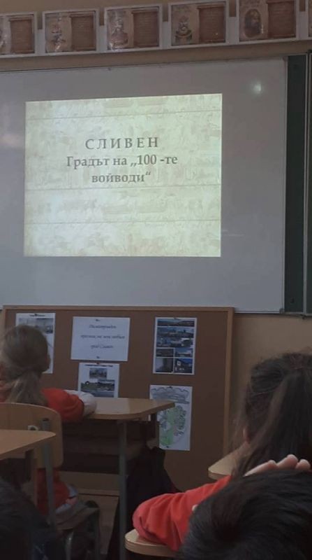Третокласниците представиха факти от историята на града ни, а г-жа Здравка Долушанова презентира много интересни легенди, което предизвика дискусия сред учениците. Тя поднесе и информация за забележителностите, като по азбучен ред беше показано богатството, което притежава Сливен.