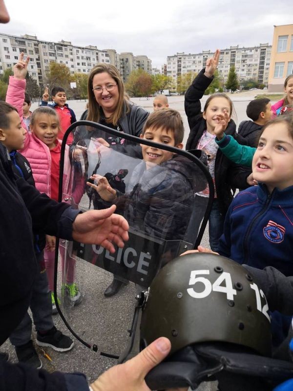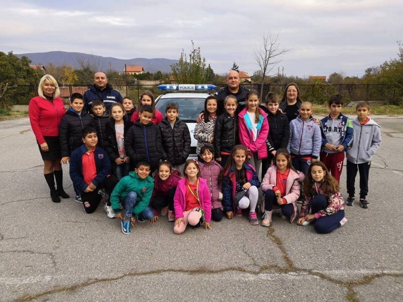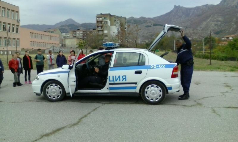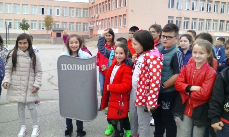 Третокласниците се докоснаха до част от полицейското оборудване - защитни шлемове, палки и белезници. Това предизвика техния интерес да разберат важността на професията на полицая.